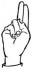 На ћирилици написано ВОЈИСЛАВ ГЛУШИЋ састоји се из 14 слова [?]. Исписано ћириличном једноручном азбуком за глувонеме: